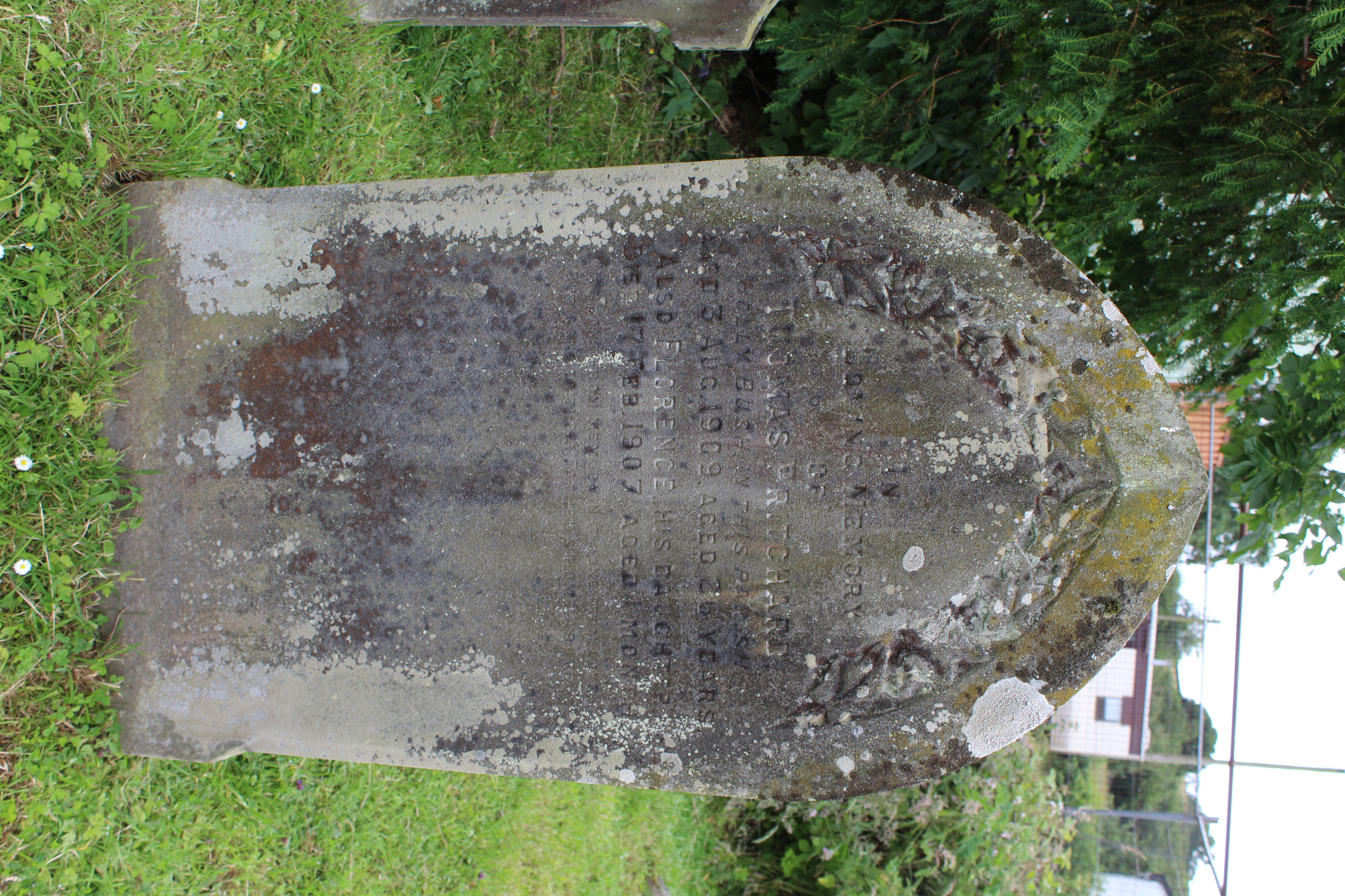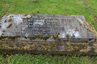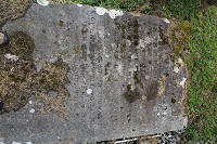 headstone badly eroded by lichens Left panel In memory of William