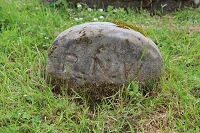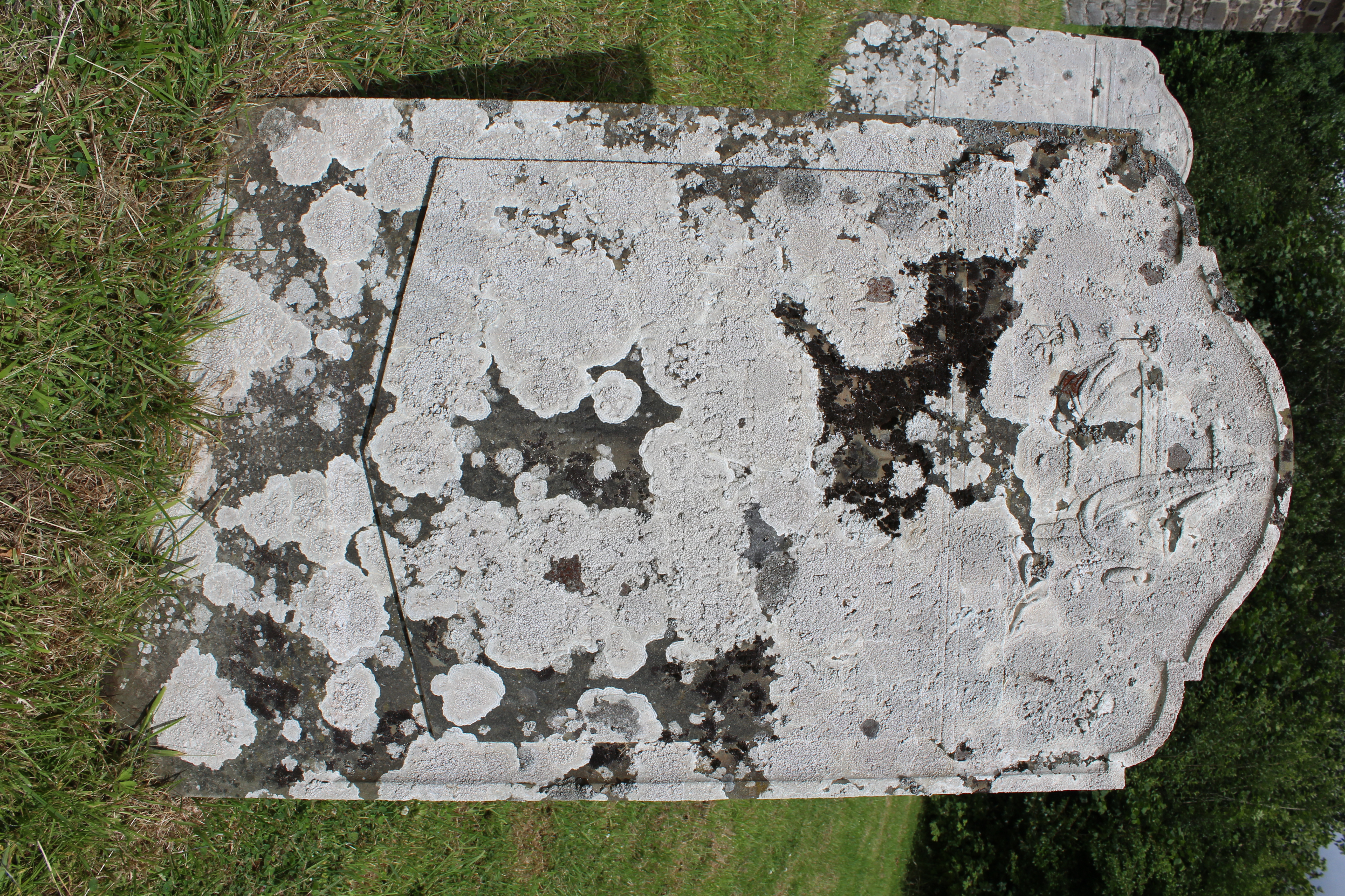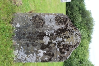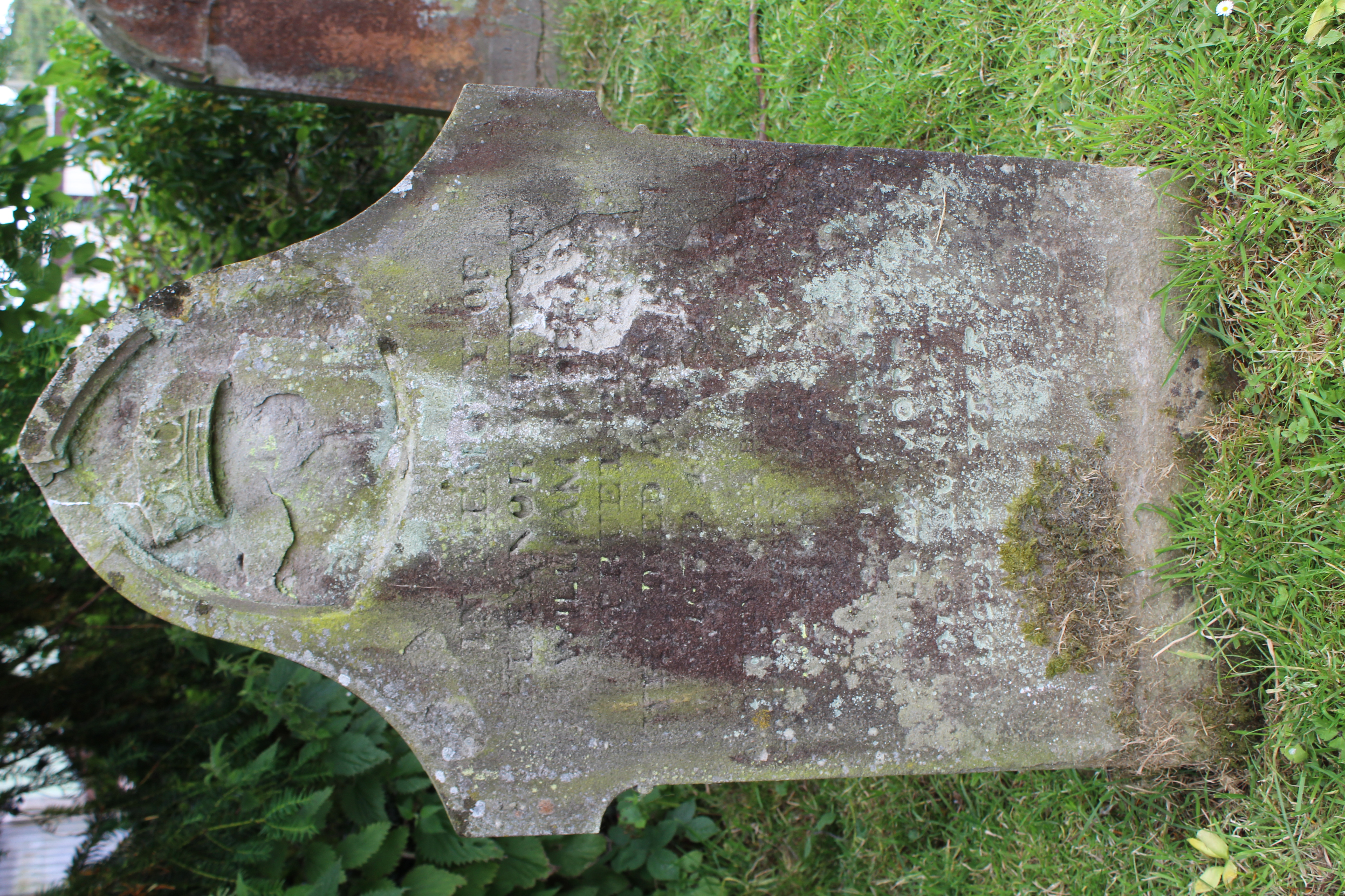 leaning and covered in lichen – details illegible |